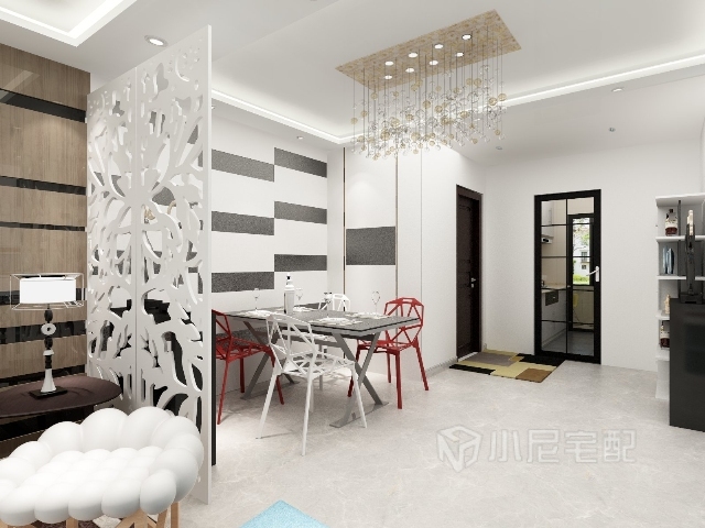 用鏤空的花紋隔斷,劃分客廳與餐廳的空間