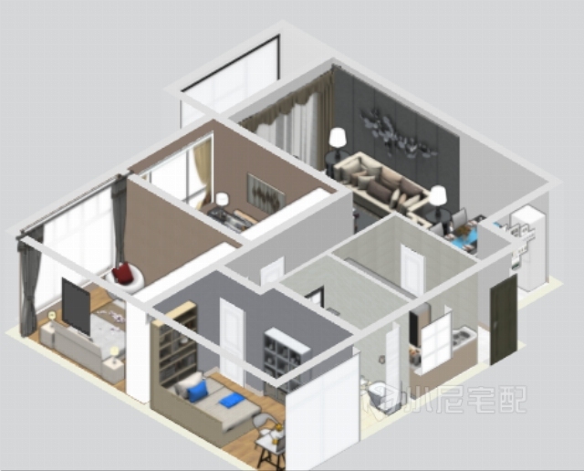 書房我是以簡(jiǎn)單的書桌和書柜、空間開敞、內(nèi)外通透,在空間平面設(shè)計(jì)中追求不受承重墻限制的自由。
