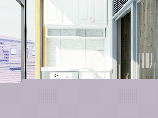陽(yáng)臺(tái)、放置洗衣機(jī)加洗臺(tái)池看上去更加美觀,實(shí)用性方便、吊柜可以放些洗衣液。看上去簡(jiǎn)潔美觀。