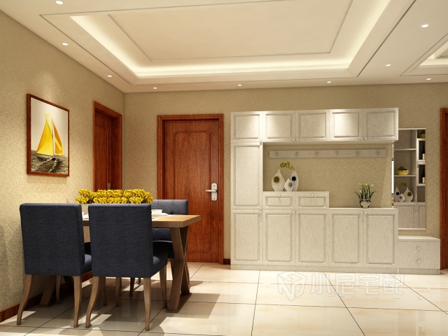 黃色紋理的壁紙配上新白橡柜子,整個(gè)空間充斥溫暖的海洋