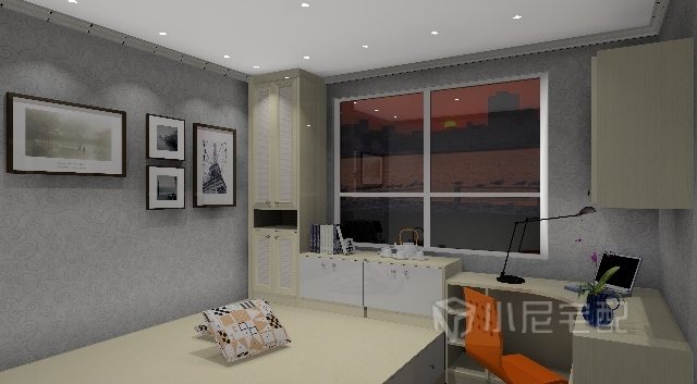 榻榻米轉(zhuǎn)角書桌的設(shè)計(jì),使整個(gè)空間都被利用。