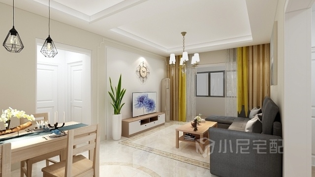 整體以簡(jiǎn)約大線條,溫婉小線條為主線,色彩選用亮黃色為跳躍色,為家增添了動(dòng)感和活動(dòng)。