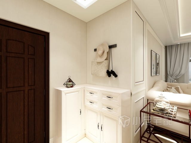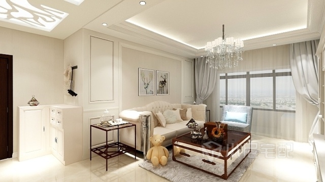 本次設(shè)計(jì)主要是簡歐風(fēng)格,維度款珠光白顏色給人一種清新典雅的感覺,仿佛脫去了繁復(fù),增加了幾分淡雅,搭配深色的茶幾,畫飾抱枕的點(diǎn)綴又增添了幾分家的味道。