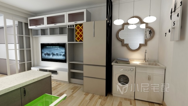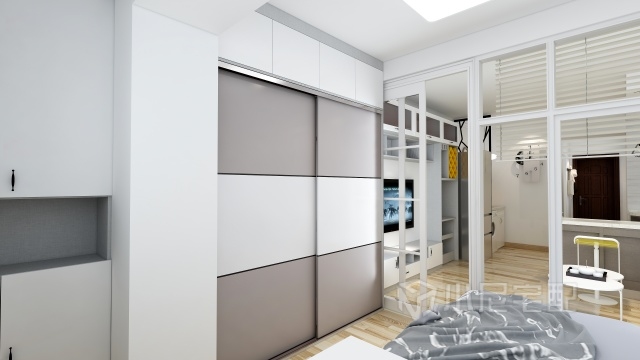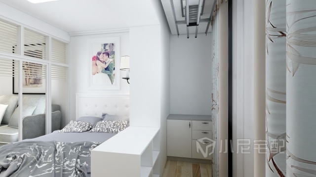 陽臺充分體現(xiàn)空間感,折疊梳妝臺和抽拉小凳??臻g百變利用