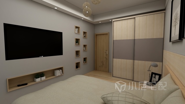 臥房電視墻嵌入式的設(shè)計(jì),更增加了空間的層次感,空間的完美結(jié)合,讓人感覺(jué)更加舒服!
