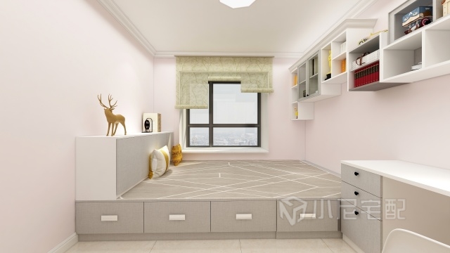 兒童房主人是一位12歲的小女孩,對(duì)以往沉悶的榻榻米難以接受,搭配不同造型的吊柜,增加活躍氣氛。
