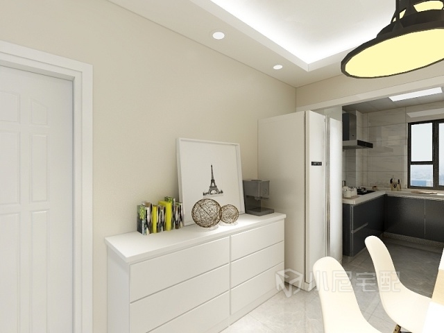 門口搭配了一個斗柜,增加了空間的飽滿度,而且簡潔大方。