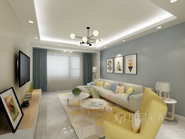 客廳是極簡的現(xiàn)代風(fēng)格:簡單的幾何形吊燈、干凈的墻壁。讓人覺得一片歲月靜好。