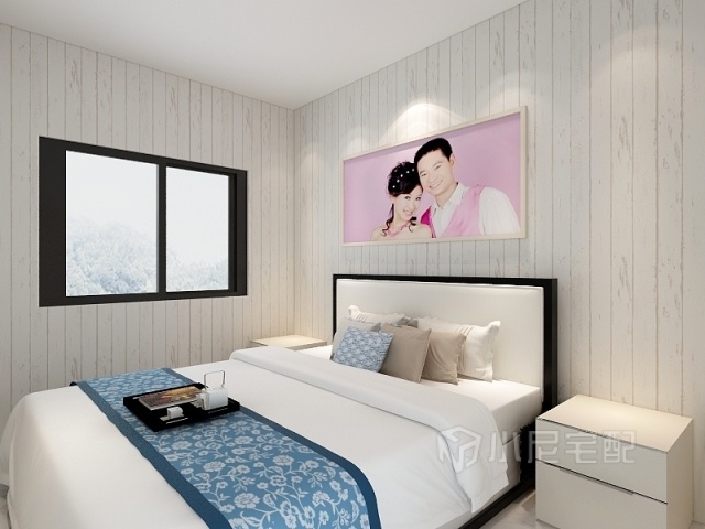 寬敞明亮的戶型設(shè)計一款簡約時尚的軟床。使空間溫馨甜蜜。