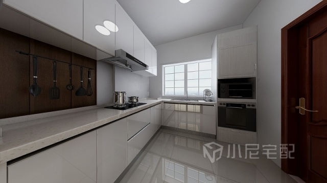 廚房采用了我們亮光吸塑,這樣的廚房干凈明亮,而且衛(wèi)生能更好的打理。