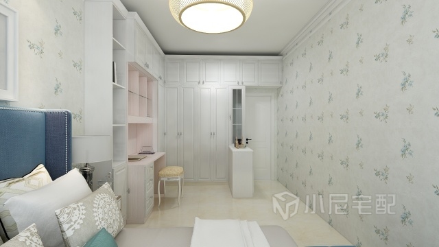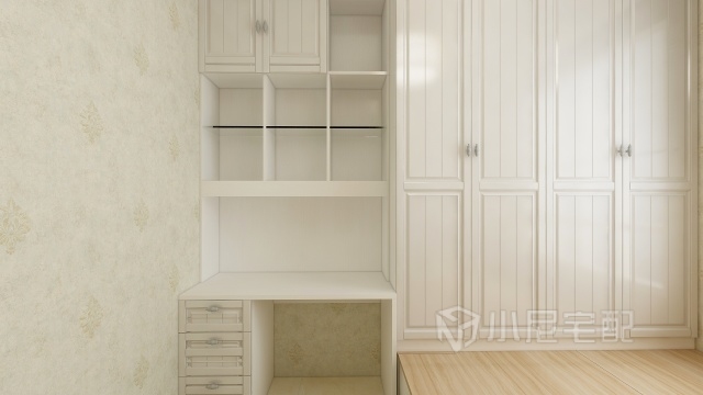 大臥室結(jié)合書房,門口設(shè)計小柜,顯得別出心裁??臻g不單調(diào)。