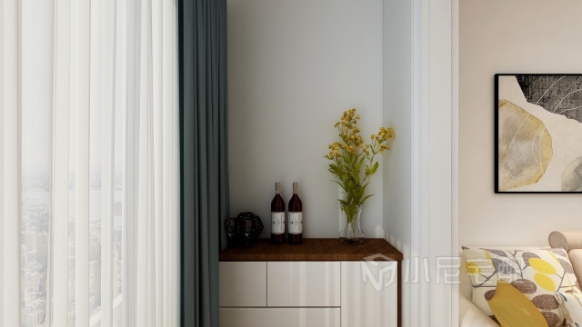 客廳陽臺放置矮柜利用空間增大儲物空間