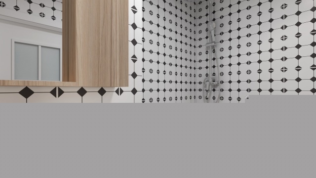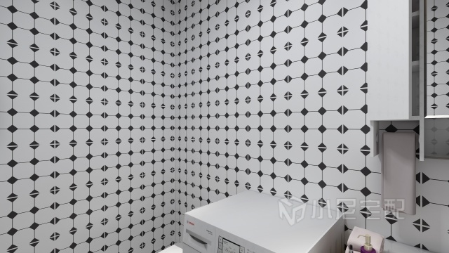 主衛(wèi)生間采用黑白格子墻磚,跳躍感十足