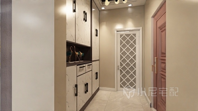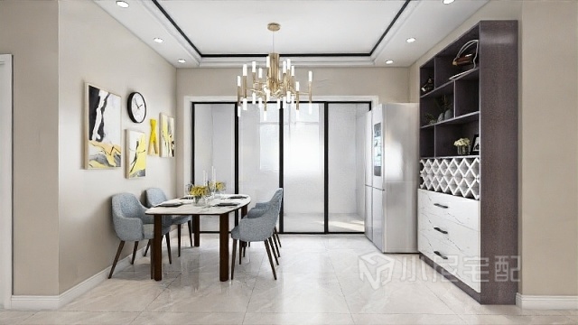 逐影隨行系列全屋定制家居,盡顯低調(diào)奢華的內(nèi)涵。頂面為三級(jí)吊頂、鈦金條裝飾。