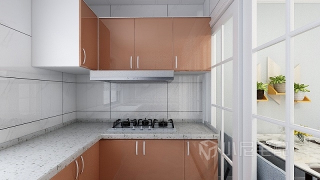 廚房采用香檳色烤漆櫥柜,高檔又好打理