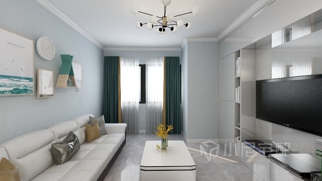 客廳做整體柜電視墻,增加儲物空間,簡單白色沙發(fā)配色