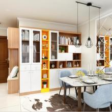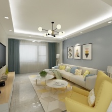 整個空間灰白色調,為房間增添溫暖和生命力。灰色早已站穩(wěn)家居時尚界的頂端,與白色搭配時卻能成為主角,共同營造時髦感和高級感。從客廳到餐廳,運用檸檬黃作為點綴色,給空間賦予了溫度和熱情。簡潔的線條和明亮的抽象藝術作品,搭配風格使得這間房間既時尚又大方。