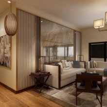 市區(qū)最貴的小區(qū)之一,頂層海景房,業(yè)主要求設(shè)計感強(qiáng),多用大理石和紅木。整套裝下來十分奢侈,