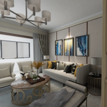 個人早起作品相當(dāng)滿意的效果,客餐廳的藍(lán)墻業(yè)主非常喜歡??筒蛷d是用3d做的燈光效果完美。