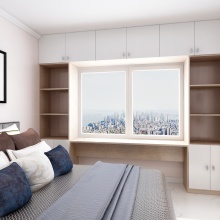 兩室一廳略顯擁擠,每一寸空間盡量利用上,榻榻米,窗邊柜,餐邊柜包冰箱,能利用的盡量利用上。
