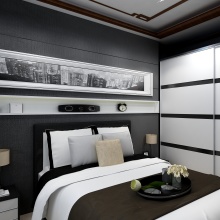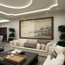 房子主要冷色系和暖色系的交替加上中式的吊頂,總給人格外煥然一新的感覺;進戶是次臥的簡單大氣的榻榻米房顯得如此的小空間卻有了別墅的感覺整體暖色系為主。接著中式的吊頂客廳和四季如風廚房。再接著就是主臥的冷色系的主臥了,前面都是暖色系感覺,現(xiàn)在卻突然的冷色系,就是不一樣的感覺。