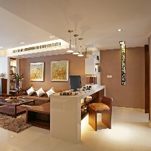 本方案為現(xiàn)代簡約風(fēng)格,整體設(shè)計以暖色調(diào)為主深色為輔營造溫馨舒適的居住環(huán)境。客廳現(xiàn)代布藝沙發(fā),休閑舒適,內(nèi)嵌式反光吊頂,以暖黃色光線渲染溫馨舒適的休閑氛圍,餐廳與客廳相鄰,增加空間通透感,休閑舒適。家裝家具一體價:14.5萬。