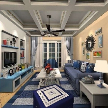地中海風格的靈魂就是“蔚藍色的浪漫情懷,海天一色、艷陽高照的純美自然”。設(shè)計中添加咖色以中和色調(diào),爛漫中不失沉穩(wěn)