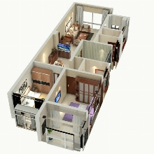 此戶型屬于小平房型,首先要合理運(yùn)用空間,客戶想做簡(jiǎn)歐風(fēng)格,由于空間的狹窄,用石膏線和有象征性的歐式裝飾物做裝點(diǎn) ,選用了條狀的米色壁紙,同時(shí)擁有歐式的效果和闊達(dá)的空間感。