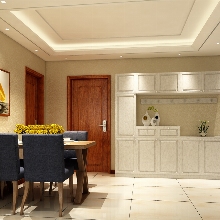 黃色紋理的壁紙配上新白橡柜子,整個(gè)空間充斥溫暖的海洋