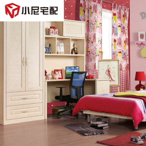 床頭采用吸塑工藝,百葉造型,彰顯雅致與活潑;簡約的床頭柜,小巧精煉,配上羅馬柱等線型,更顯文雅;字臺以白橡做舊的紋理,古典韻味的線型,同時(shí)又顯得精致靈動(dòng);衣柜經(jīng)典古樸,采用古典線型,時(shí)尚雅致的百葉門及獨(dú)具匠心造型的屜面,并加上懷舊懷舊的白橡紋理使整個(gè)衣柜氣質(zhì)非凡;椅子以弧形的線條靠背、固定扶手,簡單的造型,卻能給孩子舒心的學(xué)習(xí)體驗(yàn)。