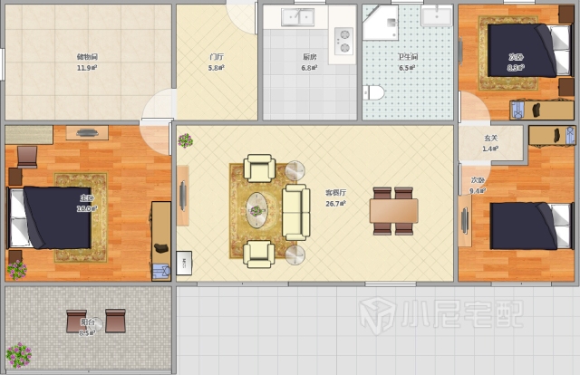 這是一個四室兩廳的戶型,業(yè)主是一對從法國回來的海歸夫婦,裝修采用簡約歐式風(fēng)格,帶著一點(diǎn)奢華的味道,大氣而浪漫。家裝家具一體價:24萬。