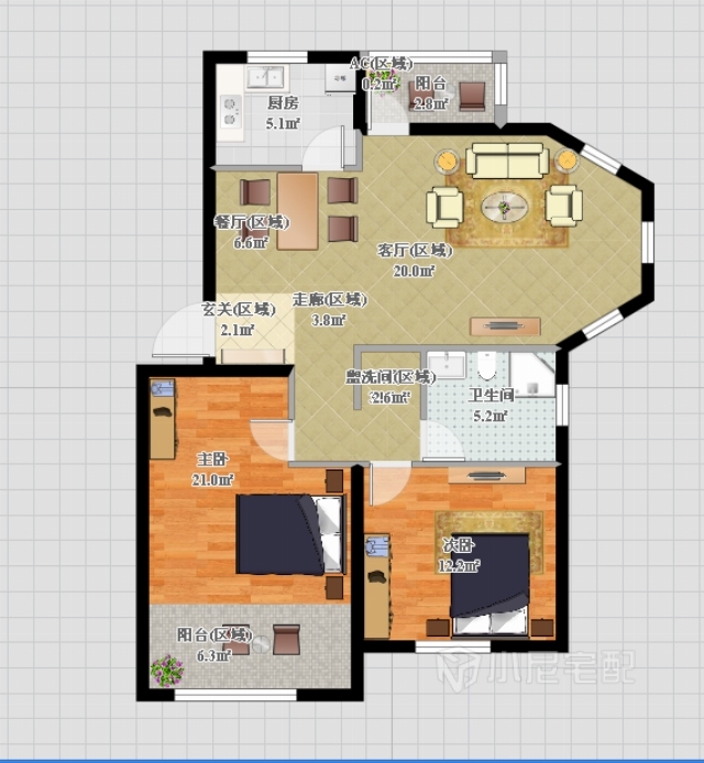 本案例居室最大的共通點就是清新,無論是色彩的運用還是風格化的設計,都突出清新的感受。家裝家具一體價:11萬。