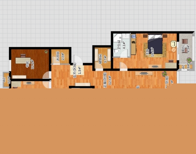 鋪設(shè)淺色木地板,選用個(gè)深色家具穩(wěn)定空間。