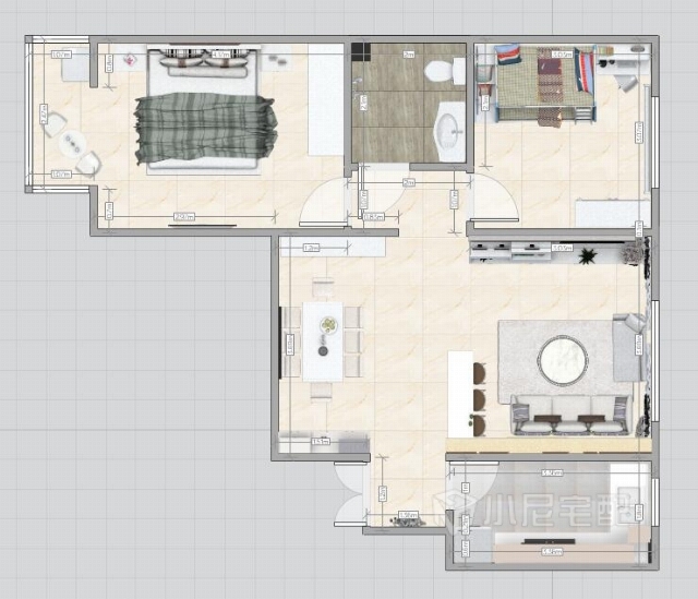 廚房也配合整體色調(diào)用了白色,L型廚房使小空間有了更多的實用功能。