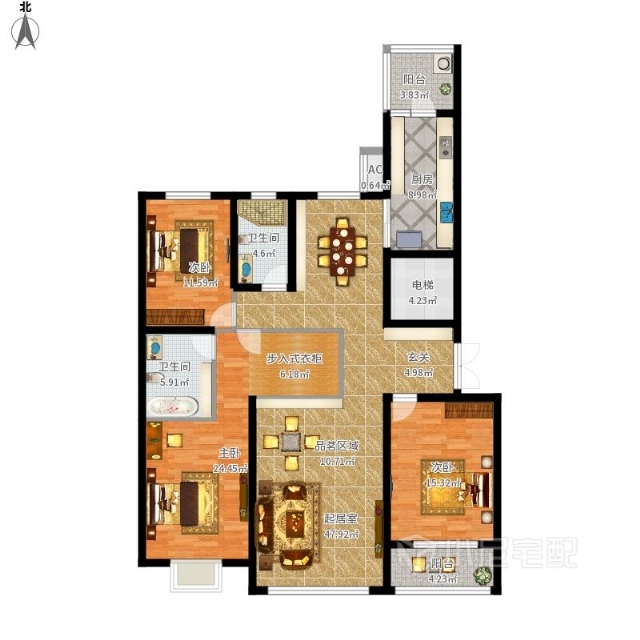 空間上既開闊融合,區(qū)域上又巧妙地進(jìn)行隱性分割。