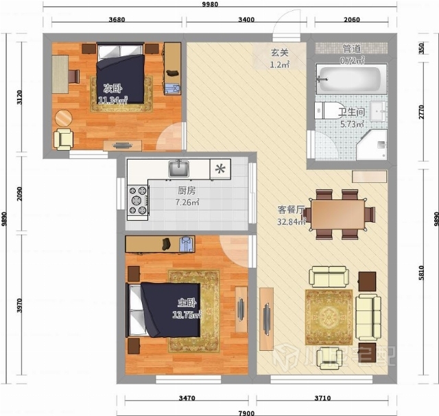客廳和餐廳是相連的,有屏風(fēng)來(lái)搭配并不影響的