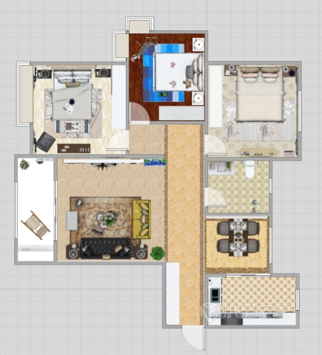 本案例為美式田園風(fēng)格,營造最適合居住的環(huán)境,給人以放松和溫馨的感覺。