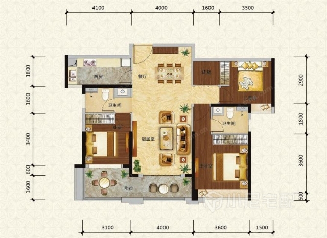把客廳的社交中心移至墻角位置,活用了死角空間,同時(shí)也為小孩創(chuàng)造了寬敞的活動(dòng)空間。