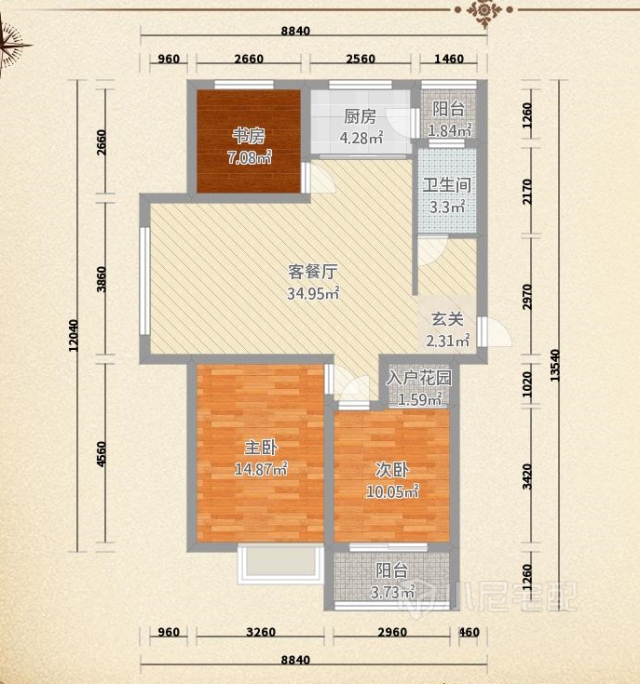 書(shū)房空間利用緊湊,書(shū)桌椅,沙發(fā),書(shū)柜,學(xué)習(xí)工作休閑融入一個(gè)空間。