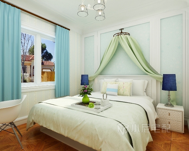 淡藍色的背景墻與窗簾相呼應(yīng),怡靜,自然。