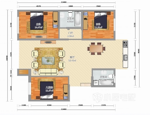 125㎡#三室兩廳兩衛(wèi)#混搭