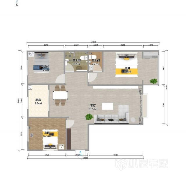 105㎡#三室一廳兩衛(wèi)#現(xiàn)代
