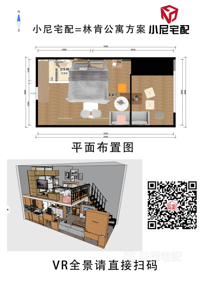 戶型為簡單的LOFT,客戶是一個人生活,但女票常常過來一起居住,所以這算是他們的私人空間。本方案主要還原一個小家的生活場景,充滿了溫馨格調。整體設計考究動線的一個布局,使整個室內顯得不那么擁擠,又可以有著自己的歡樂時光。