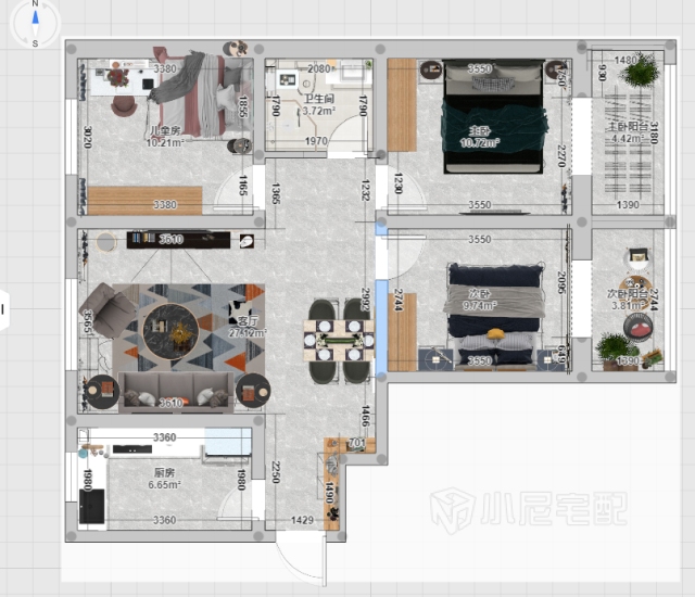 從簡(jiǎn)約出發(fā),色彩我們以白色為主,加以木色的家具,給空間增加了溫度,同時(shí)活動(dòng)家具我們以綠色來點(diǎn)綴,讓空間更有活力。