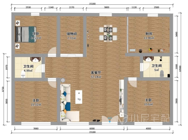 榻榻米的設(shè)計(jì),增加了許多的儲(chǔ)物空間