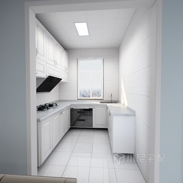 廚房比較小,所以在吊柜做了三層增加儲存功能,右側(cè)做了40厘米的地柜可以放各種電器,電飯鍋,電水壺等。