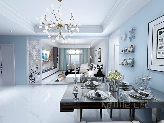 水青色的壁紙,回家到,可以洗去一天的疲勞