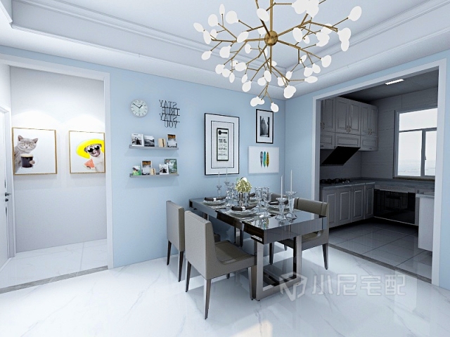餐桌背景為照片墻,記錄生活的點滴。