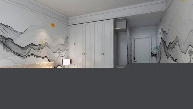 主臥衣柜,床頭柜旁邊的衣柜門分為兩體,不妨礙上面的柜門開啟