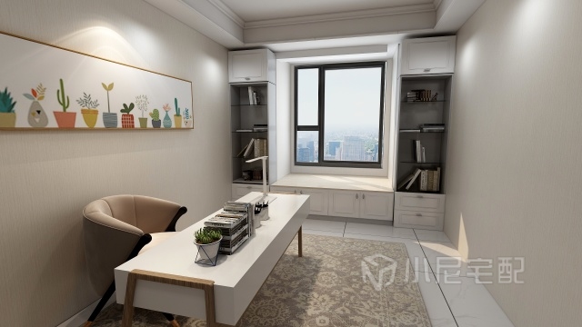 書房,飄窗設(shè)計,1.2米乘1.7米的大飄窗,夏天在上面曬太陽完全沒有問題。